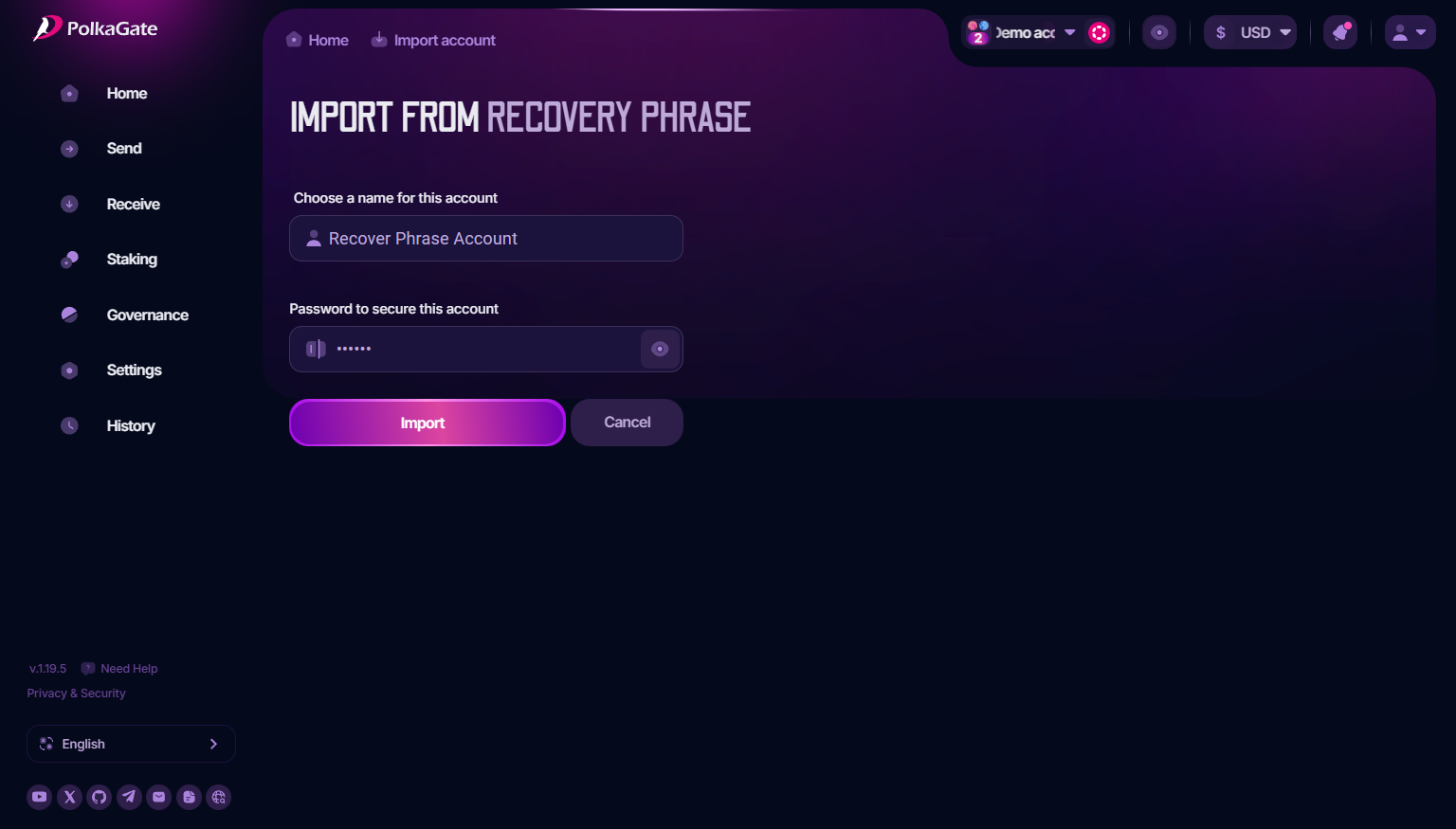 # Import from Recovery Phrase